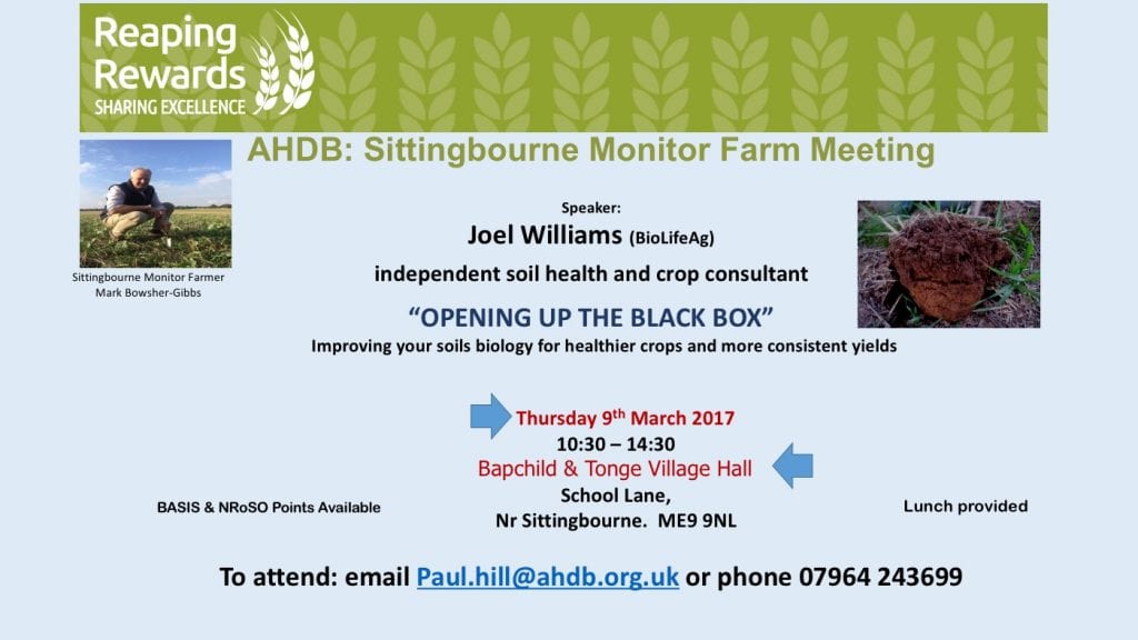 AHDB Sittingbourne Monitor Farm Event – 9th March 2017